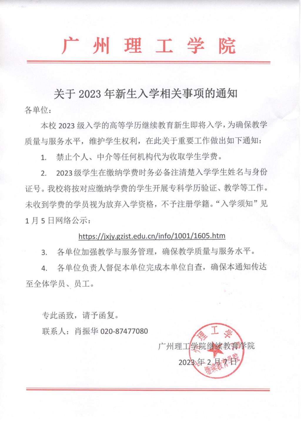 致各教学点关于2023年新生入学相关事项通知的函.pdf
