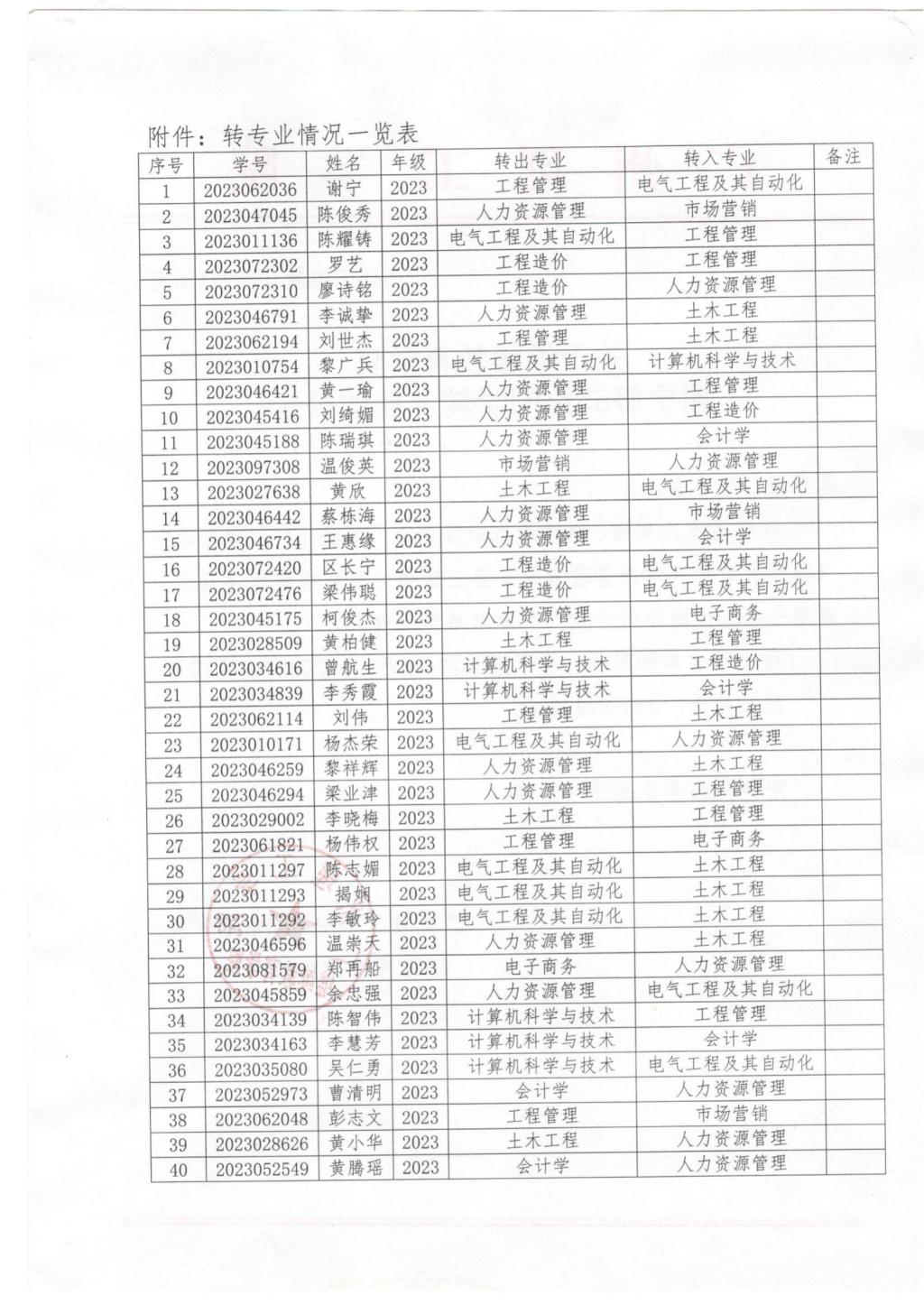 关于继续教育学院2023级谢宁等65位同学转专业的公示_
