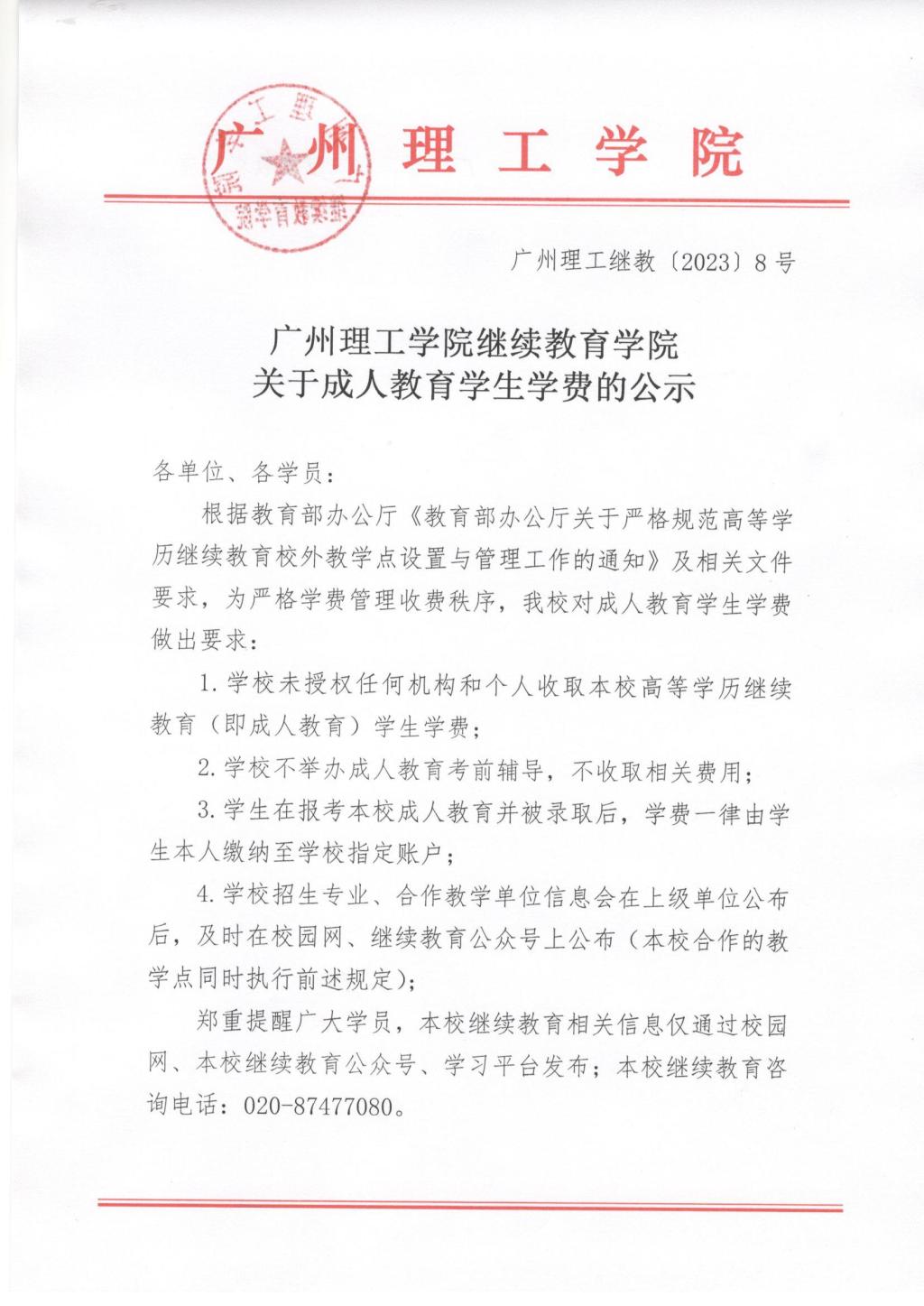 太阳成集团tyc33455继续教育学院关于成人教育学生学费的公示