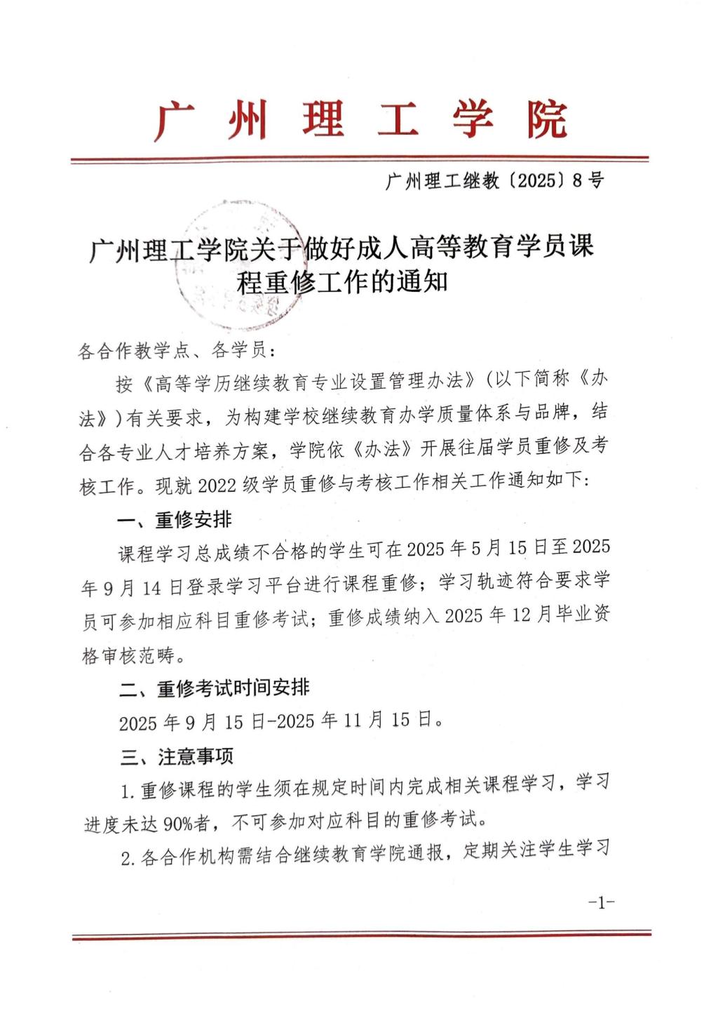 太阳成集团tyc33455关于做好成人高等教育学员课程重修工作的通知