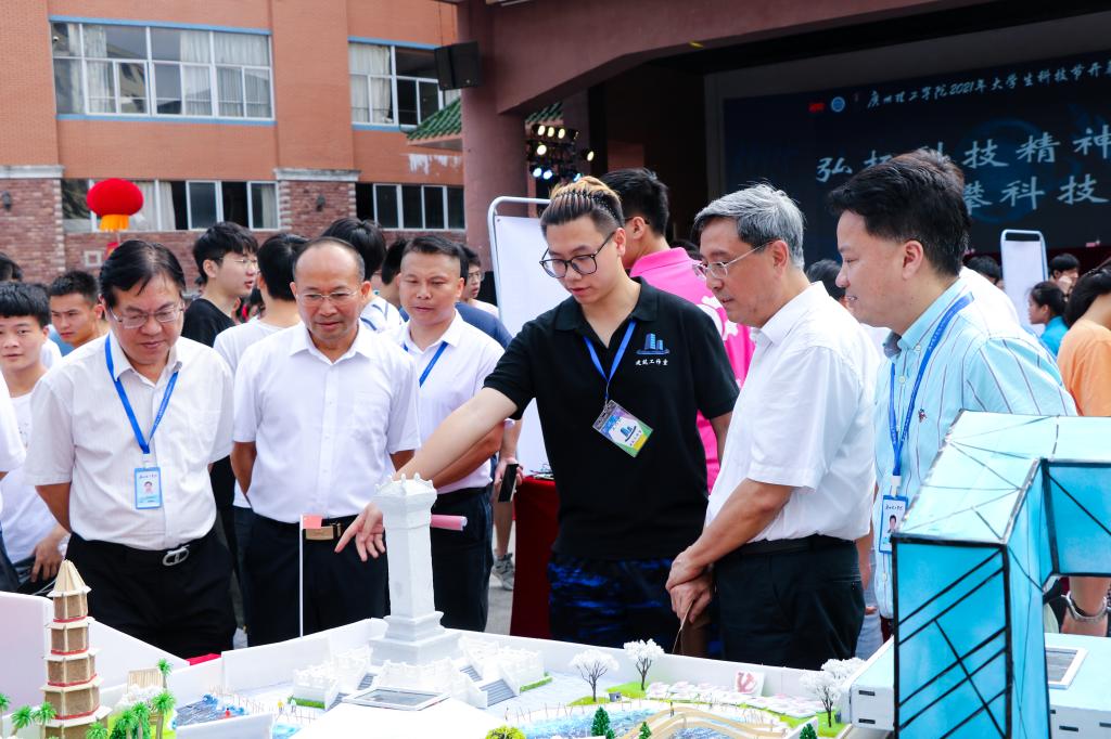 作为素质教育周品牌之一的大学生科技节,主题紧扣各专业人才培养方案。学校布置任务、设计作业、竞赛评比、赋予学分,引导师生弘扬创新精神,在科技创新中积极作为。学生积极参与,教师悉心指导,一大批优秀作品脱颖而出。各单位共选送参赛参展作品478个,包括课外学术作品、创业赛、创意设计赛、专利等,其中课外学术作品类157个、创新创业项目221个,高质量作品培育孵化明显提高。我校和始兴县司前镇共建的“一中心二基地”、“感动南粤校园”广东大学生年度人物巫泽慧及其“小茶团队”、“百年筑梦”建筑模型、机器人、客家文创产品等项目,受到嘉宾、领导、师生的高度评价。科技节实现了在校学生参与全覆盖,每个专业每个学生都有机会实现科技梦想和自我价值,充分展示了“一学院一品牌,一专业一特色”的培育成果。