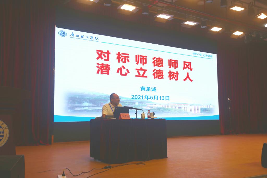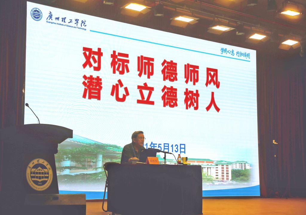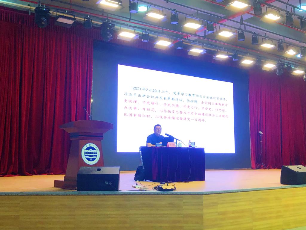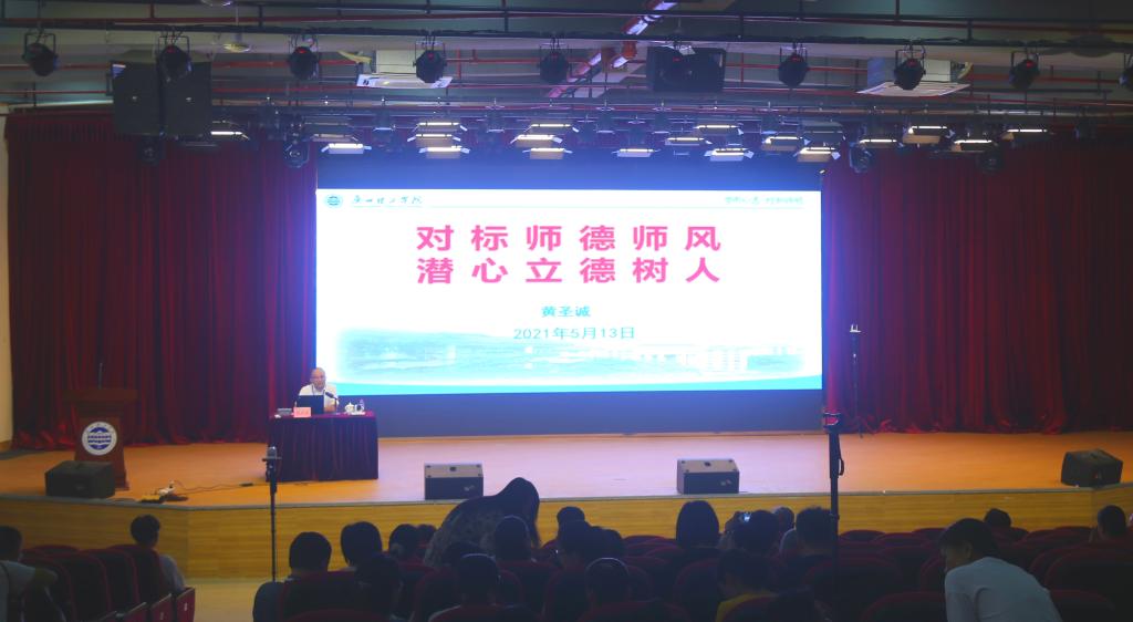(唐然)5月13日上午,根据春季学期“三全育人”素质教育周安排,太阳成集团tyc33455在新学术报告厅召开全校教职工大会,胡社军校长、黄圣诚书记出席并做师德师风建设辅导报告,广东技术师范大学李尚旗教授应邀为全校教职工做党史学习教育专题报告。大会线上线下全程全校直播。