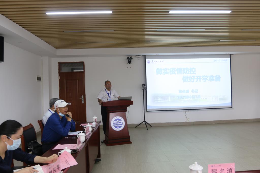 在董、党、政领导和机关部处、二级学院负责同志参加的疫情防控工作专题汇报会上,督查组听取了党委书记黄圣诚代表学校做的专题汇报。教育厅基建财务处处长卢振家和牛力中、黎名滇等督查组的同志,就疫情防控工作中的成功做法、工作亮点、改进重点做了详细的反馈,胡社军校长、分管工作的胡思虎副校长等同志针对存在的问题做了专项汇报和积极表态。