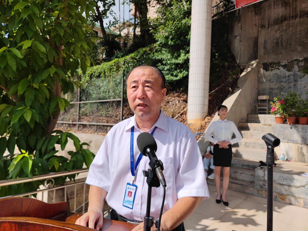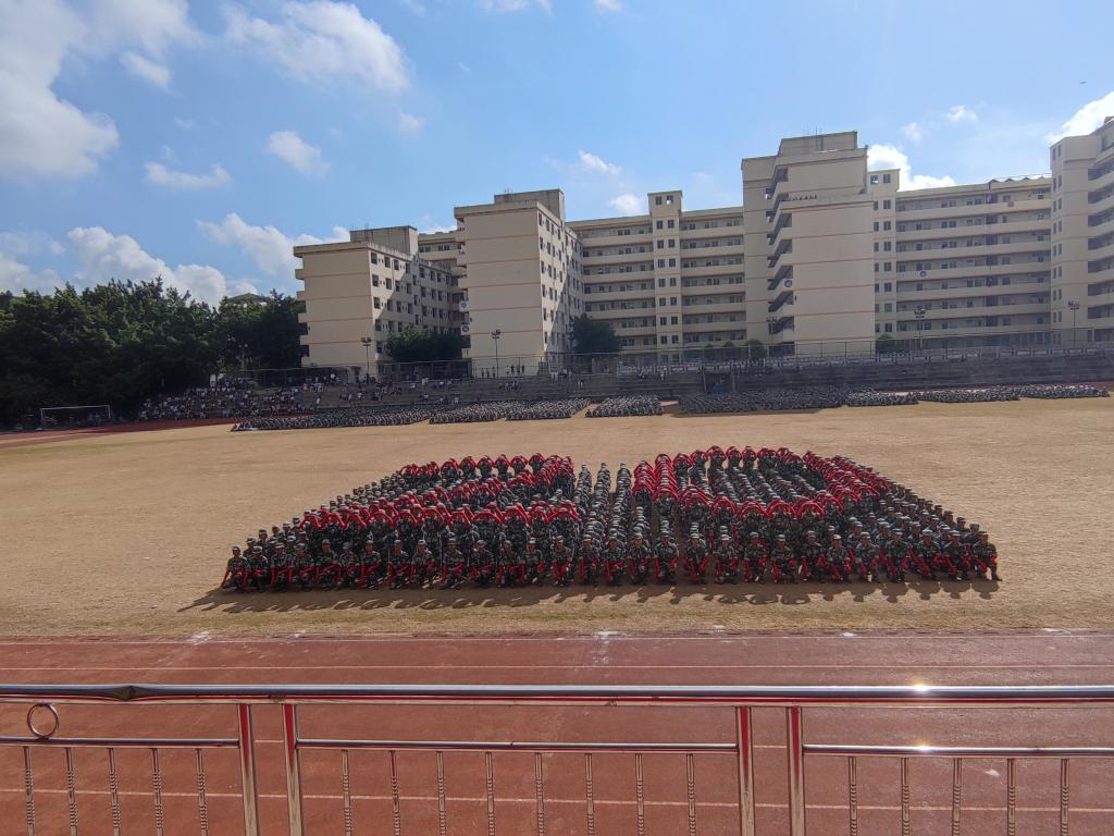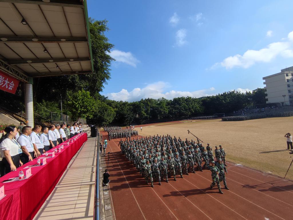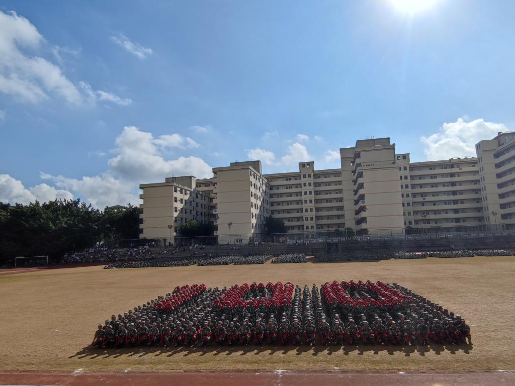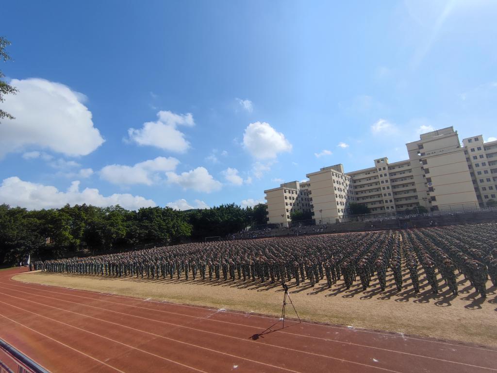 党委书记黄圣诚检阅受训队伍。各方阵齐装列阵、昂首挺胸,接受检阅。黄圣诚书记向全体学生致以亲切的问候:“同学们好!”“同学们辛苦了!”同学们报以“报效祖国”“强国有我”铿锵的青春誓言。