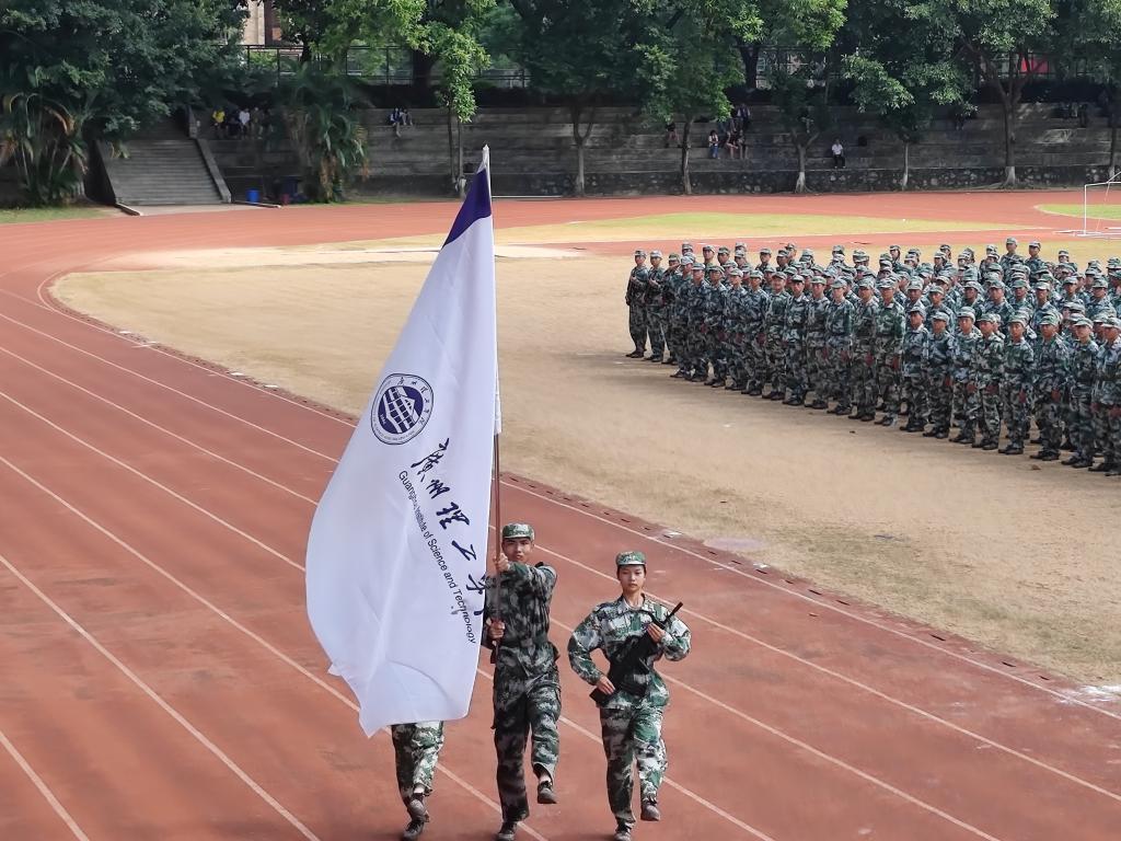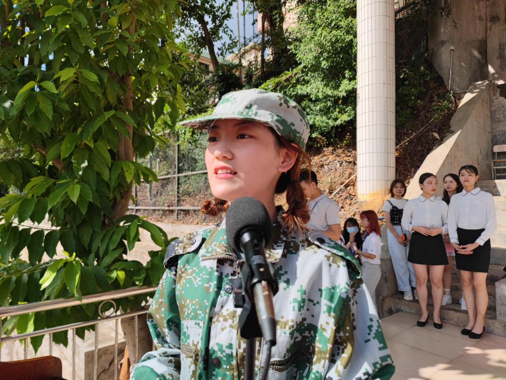 参训新生代表、数字媒体技术2班的庄佳仪同学发言并庄严宣誓,坚持军训期间培养的坚韧不拔的意志、坚不可摧的作风,勇往直前的英雄气概和团结一心的集体精神,保持高度的组织纪律性,认真学好科学文化知识,不断完善充实自己!