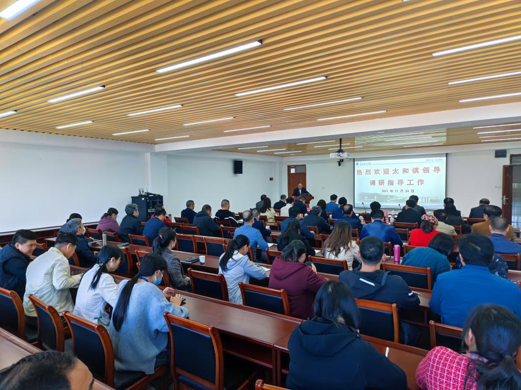 (黄菲青)11月24日,太和镇人民政府党委副书记、镇长郑伟居应邀进校,在行政楼815会议室作太和镇经济社会发展的报告,全体中层干部参加了报告会。