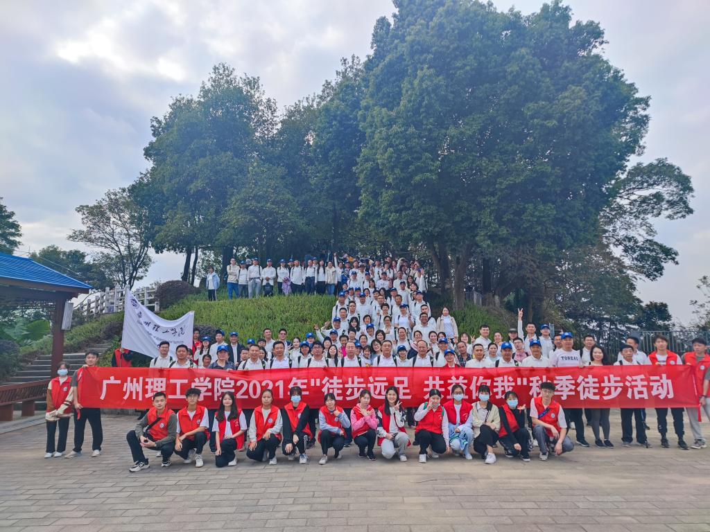 大家一边感受沿途美景,一边交流学期工作,一边品读东江纵队的历史,共话新时代美好生活。大家步履轻快,头顶蓝天白云,脚下一路黄叶,不知不觉间2个多小时已经过去,终于成功登顶。整个登山队伍中,年龄最小的3岁、最大的68岁,上下20公里的徒步,无一人掉队,展现出了广州理工人良好的精神风貌。