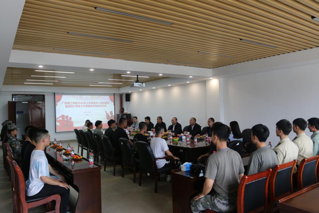 (陈朝阳 黄菲青)3月4日下午,2022年上半年应征入伍欢送会暨退役大学生士兵直属党支部成立仪式在行政楼816会议室举行。党委书记黄圣诚,党委副书记、副校长肖海出席,党委工作部、组织部、武装部、新闻中心负责同志,二级学院书记、辅导员、退役大学生、国旗护卫队代表和白云区12名预定新兵参加活动。党委工作部部长张志红主持。