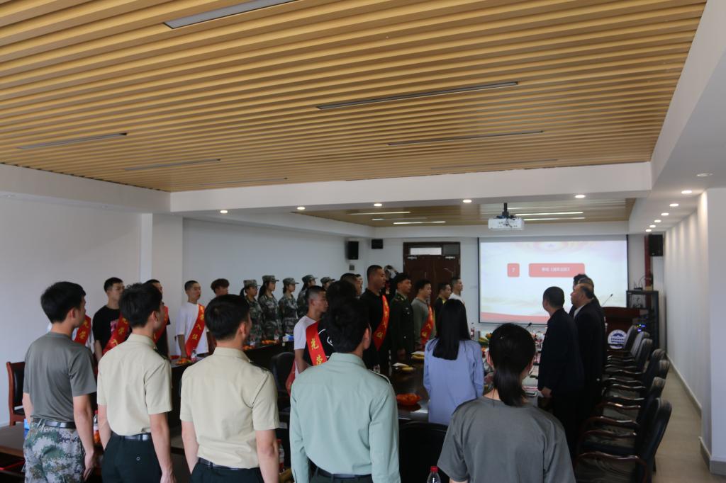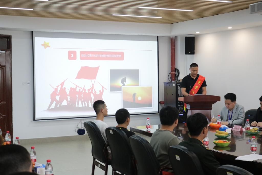 退伍老兵、音乐学院19音表班何贤锐分享了在军营生活和带新兵役前训练的心得体会。新兵代表、经济管理学院18会计6班孙晋法同学发言,感谢学校的帮助支持,倍加珍惜这来之不易的参军机会,一定不辜负学校、老师和家长的嘱托。智能与电气学院21电气2班劳乔政的父亲表示,作为家长,非常支持孩子当兵入伍、保家卫国,希望孩子们能够在军营中接受锻炼,建功立业。