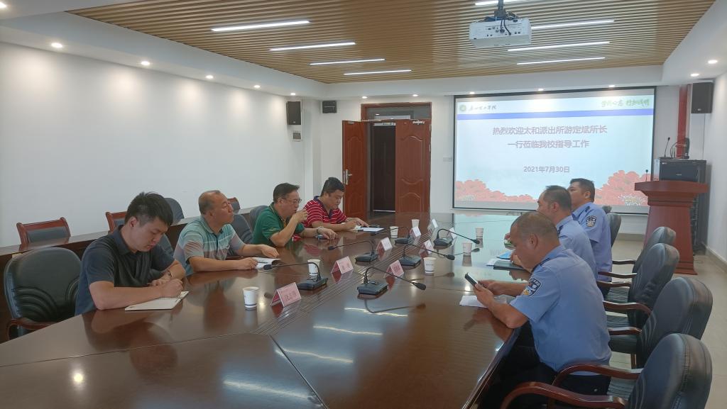 7月30日下午,白云区太和镇派出所所长游定斌、副所长罗焕明,社区民警蔡伟能等一行3人来校检查督导暑期校园安全工作。学校副校长胡思虎、肖海,保卫处、园大公司负责同志陪同检查督导并参加座谈会。