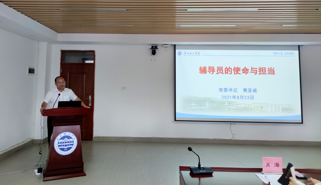 8月23日,学生管理部在行政楼815会议室牵头举办2021年新入职辅导员培训班,帮助新入职辅导员尽快适应岗位要求,提升履职能力。学校党委书记黄圣诚、副校长肖海出席本次培训班并作专题辅导报告。学生管理部各部门负责人、各二级学院党总支书记、学工组长和全体新入职辅导员参加了培训班。培训班会议流程由学生处副处长肖柳主持。