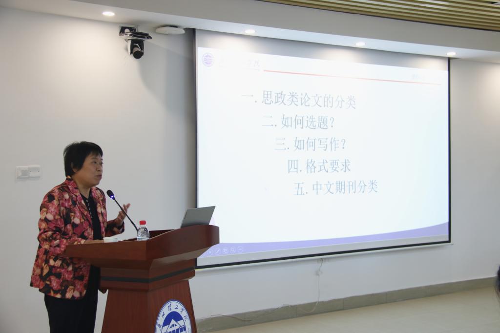 1月7日下午,为提升我校思政工作科学化水平,增强辅导员开展科学研究的自觉性,学生管理部邀请马克思主义学院院长袁毓玲教授为全体辅导员作了题为《思政类科研论文选题与写作》的专题培训。学校党委副书记、副校长肖海和学生管理部各部门负责人、二级学院党总支书记以及全体辅导员参加了讲座。
